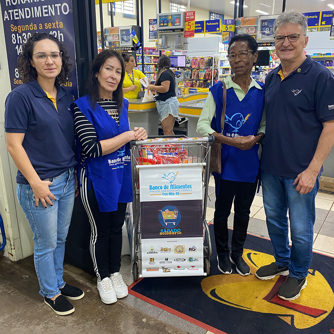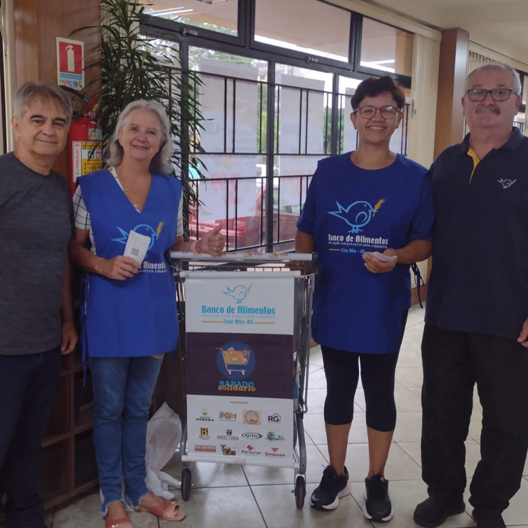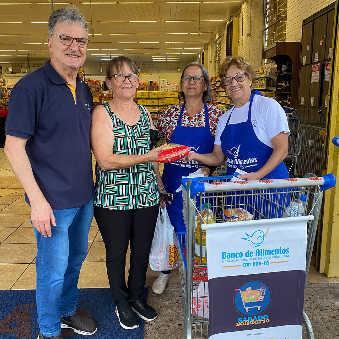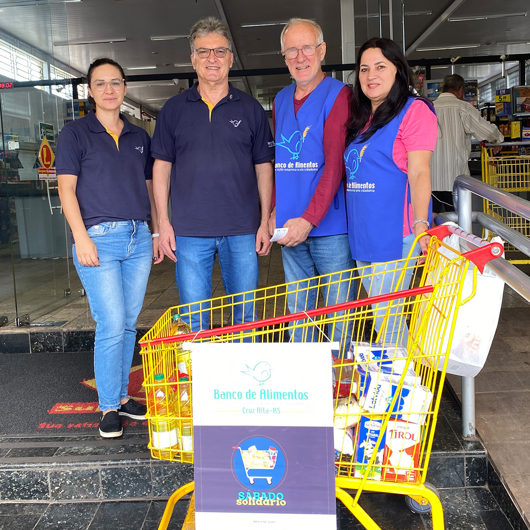 O Sábado Solidário é uma ação mensal do Banco de Alimentos de Cruz Alta, realizada em parceria com supermercados locais para promover a arrecadação de alimentos e engajar a comunidade com o projeto.