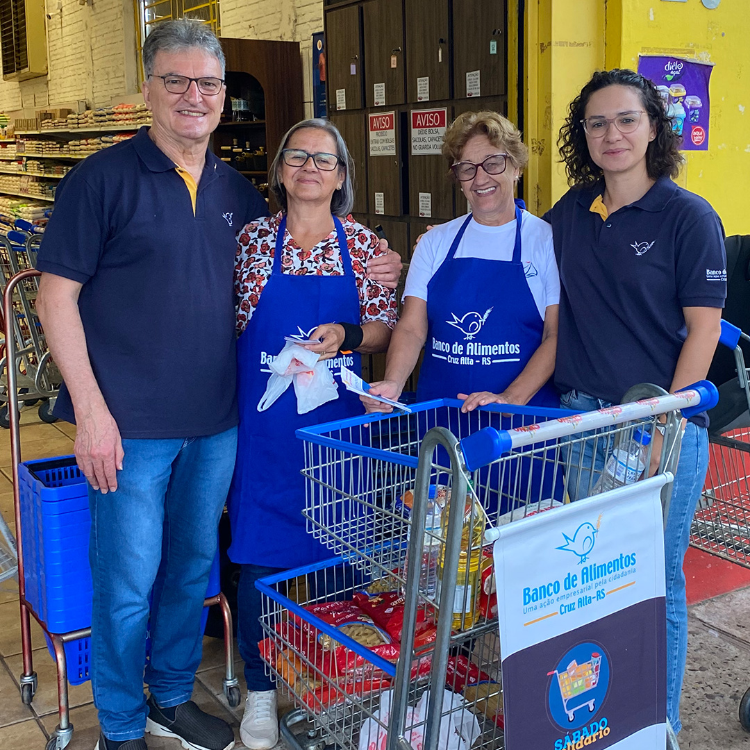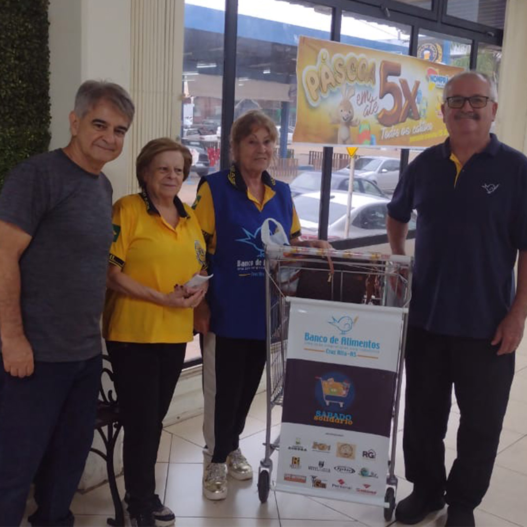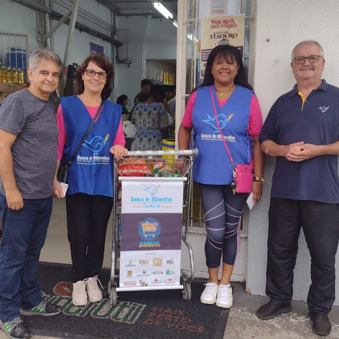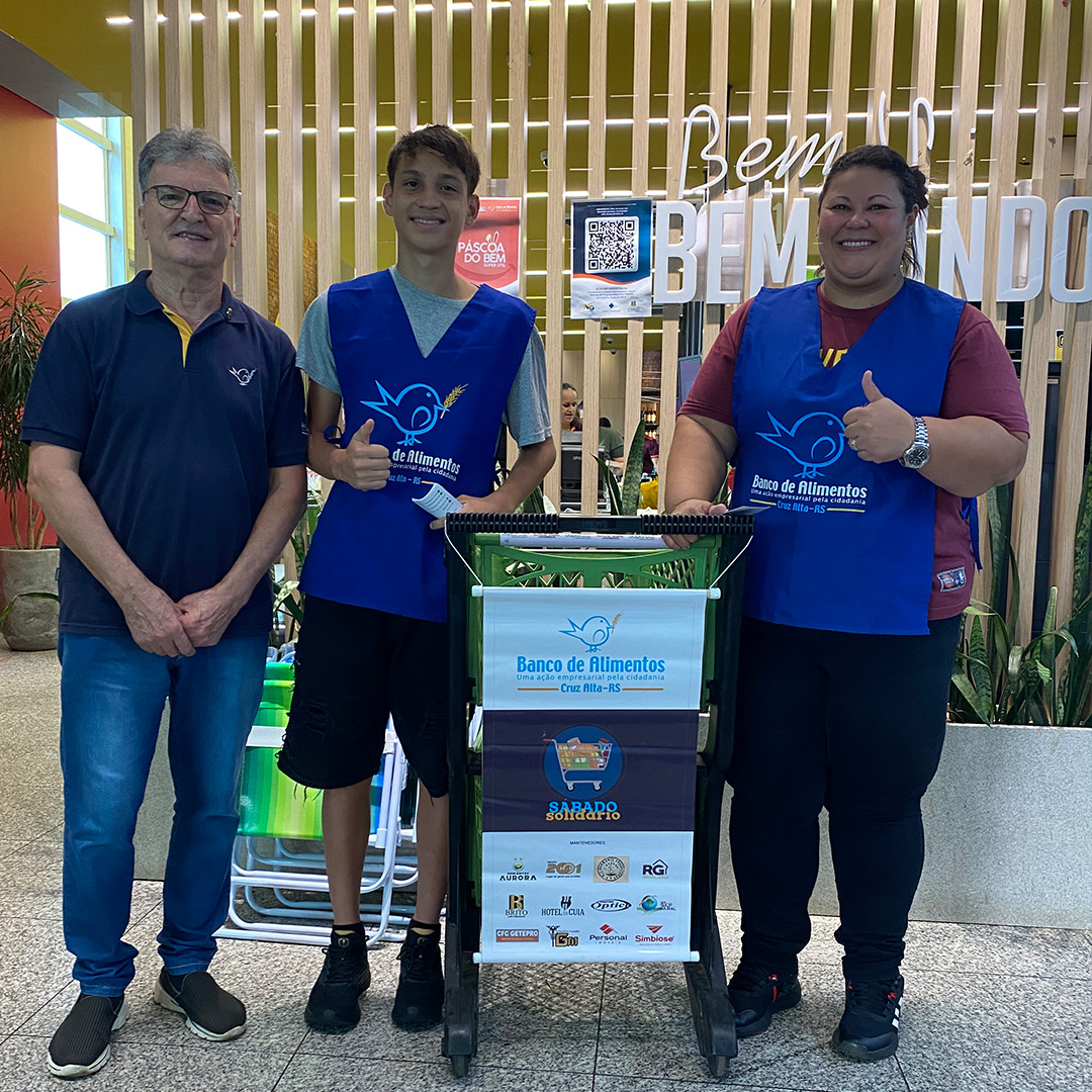 O Sábado Solidário é uma ação mensal do Banco de Alimentos de Cruz Alta, realizada em parceria com supermercados locais para promover a arrecadação de alimentos e engajar a comunidade com o projeto.