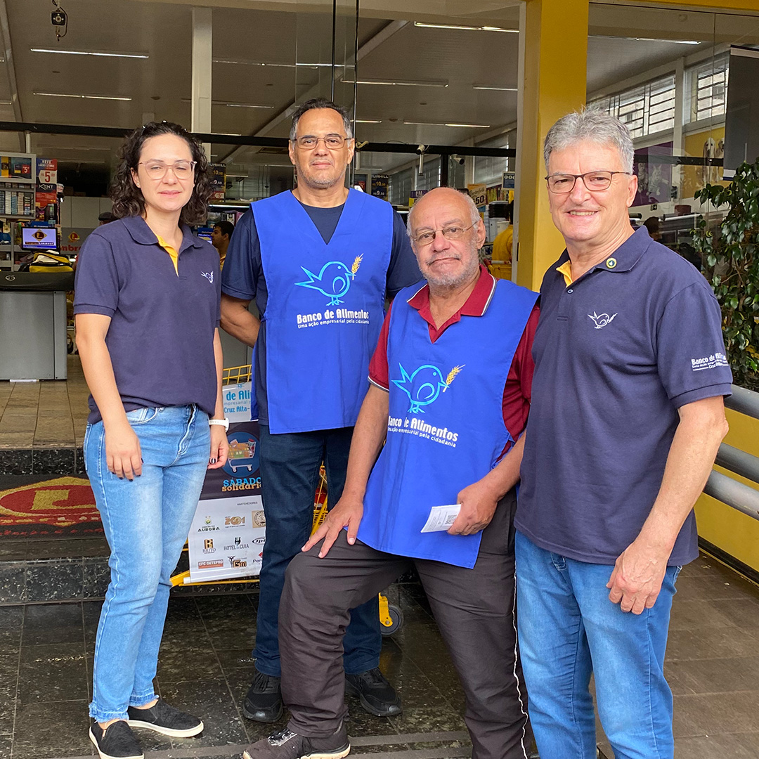 A ação ocorre no primeiro sábado de cada mês, quando contamos com o apoio de supermercados da cidade e a dedicação de voluntários. Durante a ação, os voluntários estão presentes nos supermercados, incentivando os clientes a contribuir com doações de alimentos e divulgando o trabalho do Banco de Alimentos.